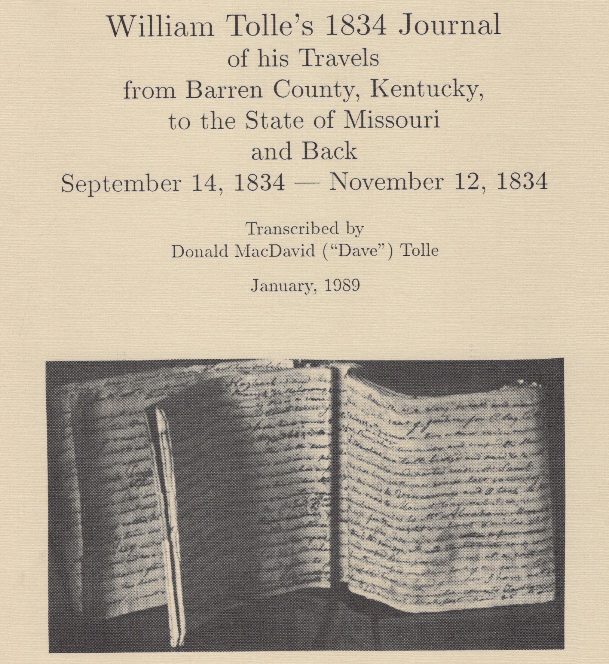 William Tolle's 1834 Journal